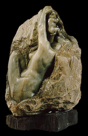 Mother and Child Artist: La Fond Petrified Wood Base(10 1/2"H) Unique
